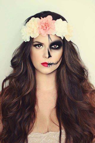 Últimamente he visto que esta en tendencia maquillar solo la mitad de la cara de catrina y la otra con un maquillaje lindo pero más normal, esta es una opción perfecta por si no tienes tiempo de producirte con tu disfraz o simplemente quieres verte más fashion.